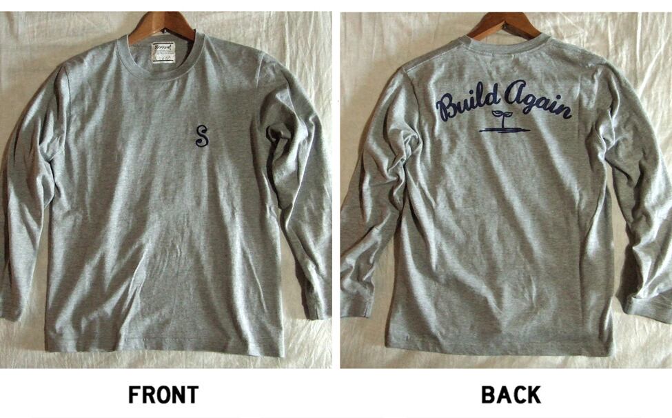 6.2ozのロングスリーブTシャツに復興の思いを描いた1枚。
